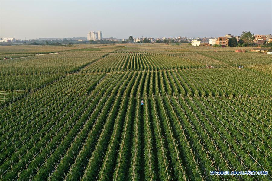 GUANGXI, diciembre 2, 2018 (Xinhua) -- Imagen del 30 de noviembre de 2018, de una vista aérea de campos de vegetales en el condado de Tiandong de Baise, en la Región Autónoma Zhuang de Guangxi, en el sur de China. Cubriendo un área de alrededor de 36,300 kilómetros cuadrados y con una población de más de 4.1 millones, Baise es una importante base de frutas y vegetales, además de uno de los más importantes productores de aluminio de China. (Xinhua/Huang Xiaobang)