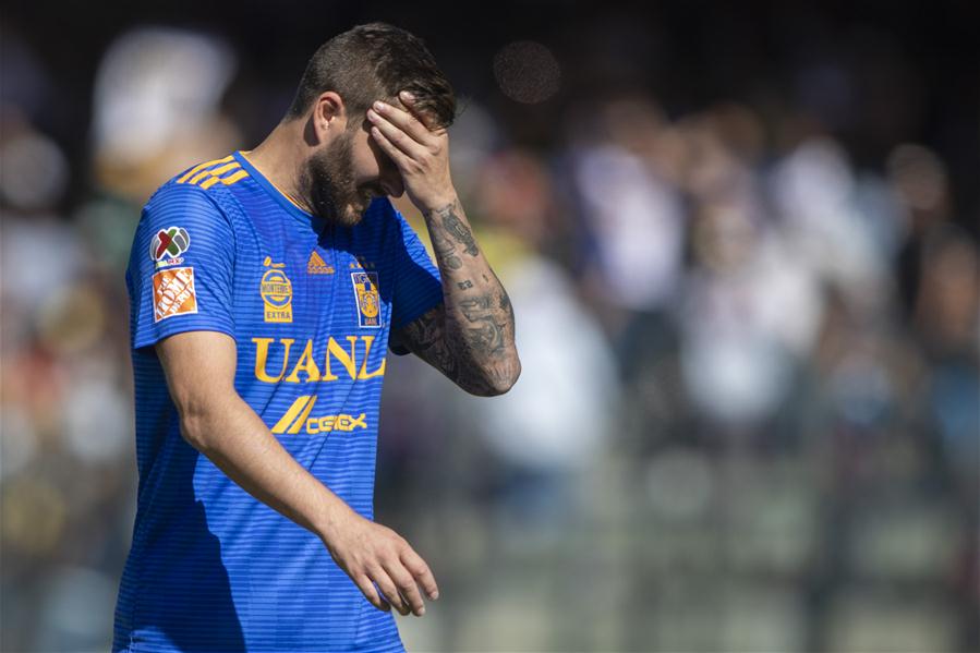 CIUDAD DE MEXICO, diciembre 2, 2018 (Xinhua) -- Imagen proveída por Straffon Images, del jugador André-Pierre Gignac, de Tigres, reaccionando durante el partido de vuelta de los cuartos de final del Torneo Apertura 2018 de la Liga MX, ante Pumas de la UNAM, celebrado en el Estadio Olímpico Universitario, en la Ciudad de México, capital de México, el 2 de diciembre de 2018. (Xinhua/Víctor Straffon/STRAFFON IMAGES)