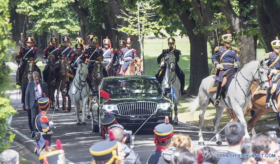 BUENOS AIRES, diciembre 2, 2018 (Xinhua) -- El presidente chino, Xi Jinping, y su esposa, Peng Liyuan, se dirigen hacia la residencia presidencial, en Buenos Aires, Argentina, el 2 de diciembre de 2018. Xi Jinping se reunió con su homólogo argentino Mauricio Macri el domingo en Argentina. Previo a su reunión, Mauricio Macri sostuvo una gran ceremonia de bienvenida para Xi Jinping. (Xinhua/Li Tao)