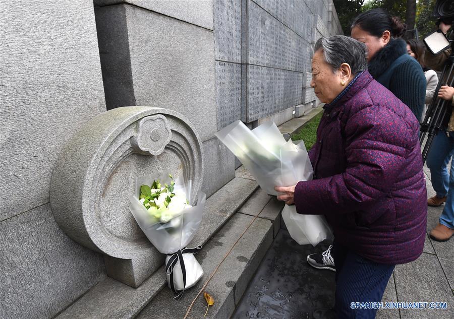 Desde hoy lunes, familiares de las víctimas de la matanza empezaron una serie de actividades conmemorativas, como colocar arreglos florales, quemar incienso y leer cartas frente a la pared del pabellón conmemorativo donde están grabados los nombres de las víctimas, en Nanjing, la capital de la provincia oriental china de Jiangsu.