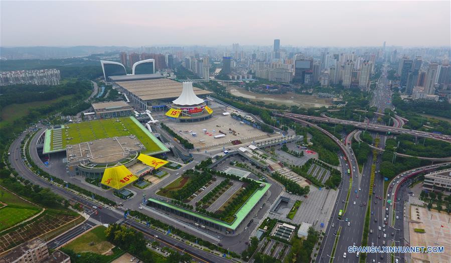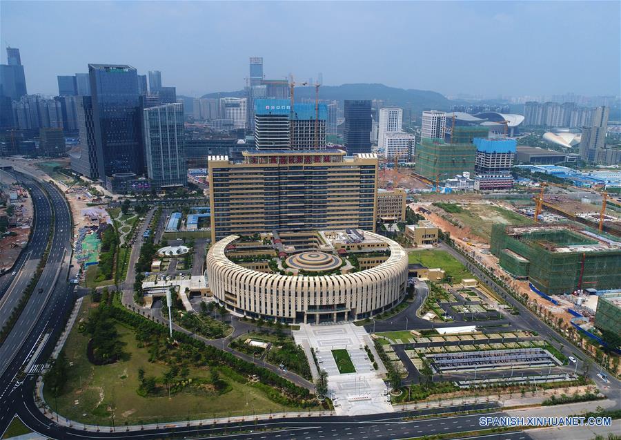GUANGXI, diciembre 4, 2018 (Xinhua) -- Imagen del 6 de septiembre de 2018 de una vista aérea del Centro Internacional de Convenciones y Exposiciones de Nanning, en Nanning, ciudad capital de la Región Autónoma Zhuang de Guangxi, en el sur de China. Este a?o marca el 60 aniversario del establecimiento de la Región Autónoma Zhuang de Guangxi. (Xinhua/Wei Xiuling)