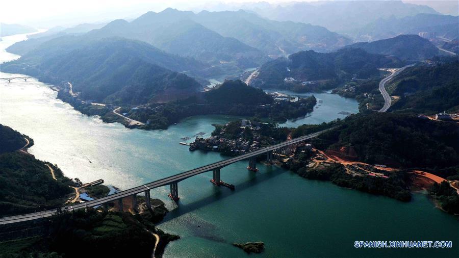 GUANGXI, diciembre 4, 2018 (Xinhua) -- Imagen del 25 de noviembre de 2018 de una vista aérea de la Autopista Hechi-Baise, en la Región Autónoma Zhuang de Guangxi, en el sur de China. Este a?o marca el 60 aniversario del establecimiento de la Región Autónoma Zhuang de Guangxi. (Xinhua/Gao Dongfeng)