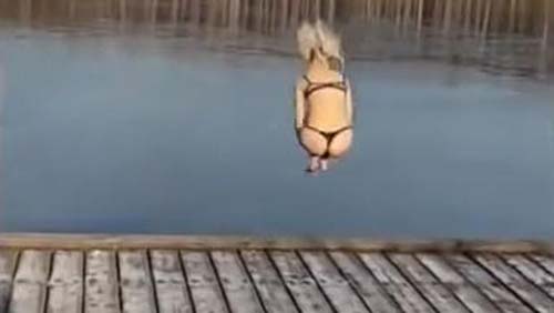 Moscú, 05/12/2018(El Pueblo en Línea) - Aunque parezca surrealista, esto sucedió en Moscú. Una mujer rusa, en ropa interior pese a que se intuye una temperatura gélida, salta en un lago desde una superficie de madera mientras un acompa?ante graba su lanzamiento. Sin embargo, cuando la chica cae, resulta que el lago está congelado, por lo que se golpea de mala manera con los pies sobre la capa de hielo que recubre la masa de agua, según ABC.