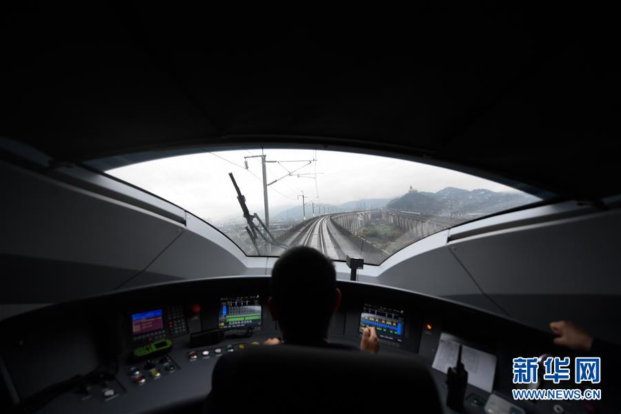 El 6 de diciembre, el conductor del tren de alta velocidad operó el tren de alta velocidad "Fuxing" en la línea Hangzhou-Huangzhou. Por Huang Zongzhi, Agencia de Noticias Xinhua