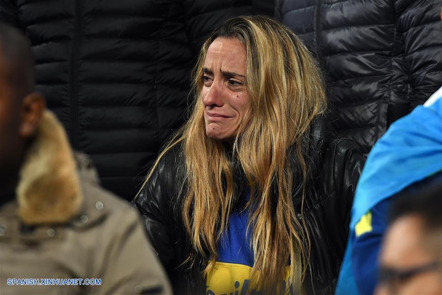 MADRID, diciembre 9, 2018 (Xinhua) -- Imagen proveída por la agencia de noticias Télam de una aficionada de Boca Juniors, reaccionando al término del partido de la final de la Copa Libertadores 2018, ante River Plate, celebrado en el Estadio Santiago Bernabéu, en Madrid, Espa?a, el 9 de diciembre de 2018. (Xinhua/José Romero/TELAM)