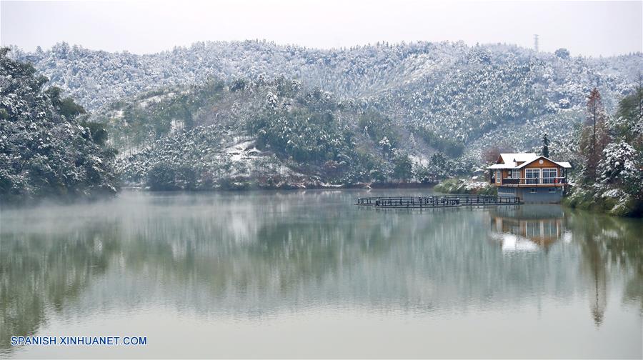 ZHEJIANG, diciembre 10, 2018 (Xinhua) -- Imagen del 9 de diciembre de 2018 del paisaje nevado del condado Deqing, en la ciudad Huzhou, en la provincia de Zhejiang, en el este de China. (Xinhua/Xie Shangguo)