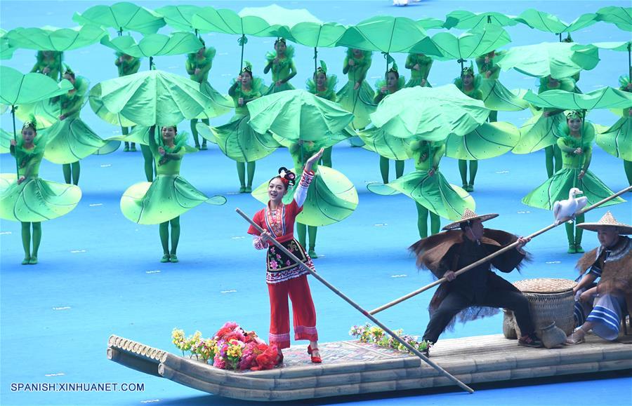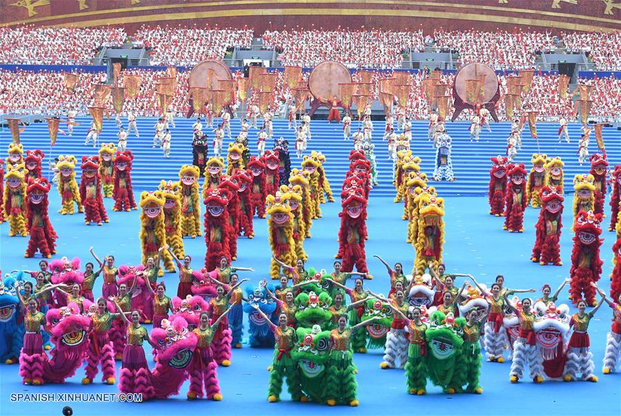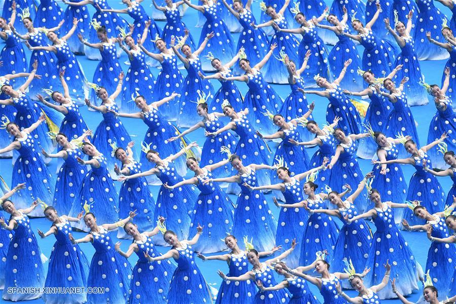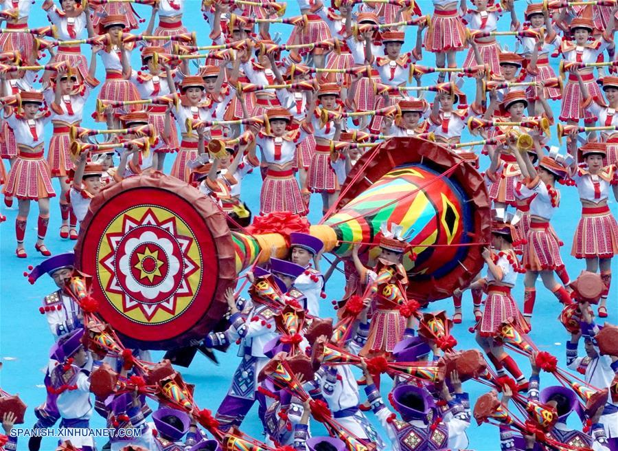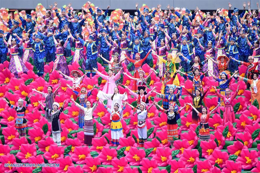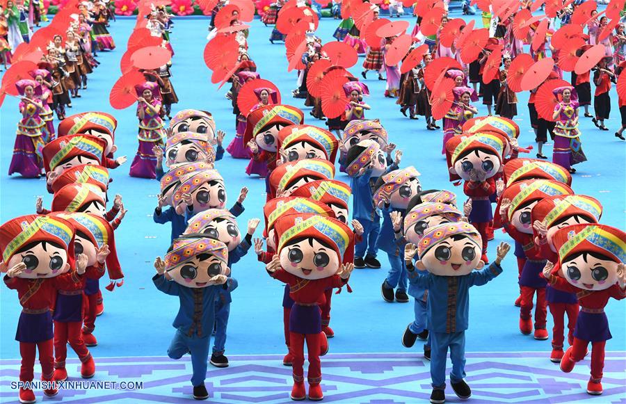 GUANGXI, diciembre 10, 2018 (Xinhua) -- Bailarines participan en una gran reunión para conmemorar el 60 aniversario de la fundación de la Región Autónoma Zhuang de Guangxi, en Nanning, capital de Guangxi, en el sur de China, el 10 de diciembre de 2018. (Xinhua/Chen Jianli)