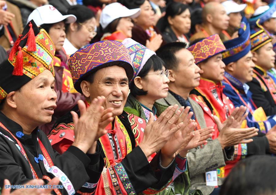 GUANGXI, diciembre 10, 2018 (Xinhua) -- Personas participan en una gran reunión para conmemorar el 60 aniversario de la fundación de la Región Autónoma Zhuang de Guangxi, en Nanning, capital de Guangxi, en el sur de China, el 10 de diciembre de 2018. (Xinhua/Chen Jianli)
