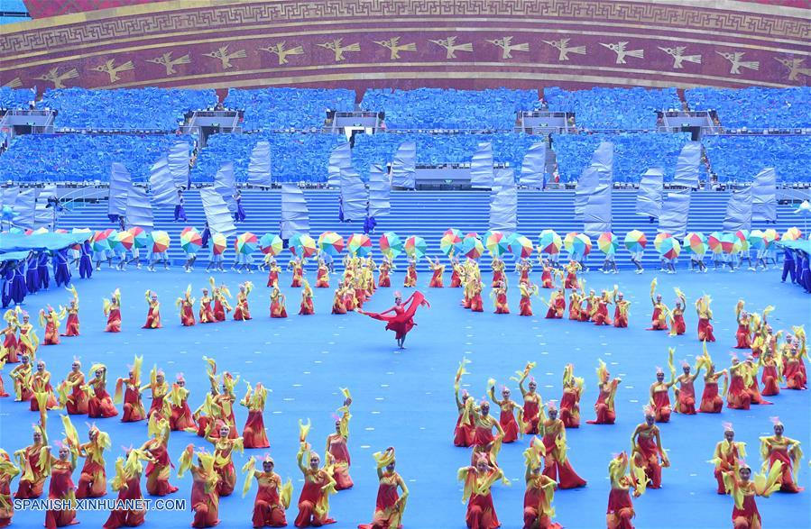 GUANGXI, diciembre 10, 2018 (Xinhua) -- Bailarines participan en una gran reunión para conmemorar el 60 aniversario de la fundación de la Región Autónoma Zhuang de Guangxi, en Nanning, capital de Guangxi, en el sur de China, el 10 de diciembre de 2018. (Xinhua/Li Xin)