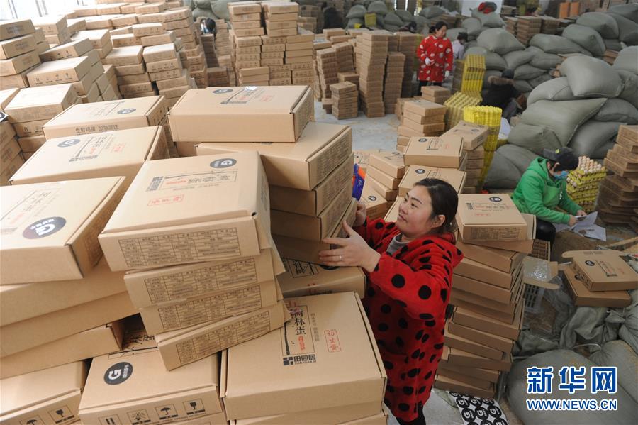 Fuyang,Anhui,12/12/2018(El Pueblo en Línea)-El 11 de diciembre, en el Parque Industrial de Comercio Electrónico Juvenil de Fuyang en la provincia de Anhui, los trabajadores de una empresa de comercio electrónico clasificaba las cajas de huevos y se preparaba para las ventas en línea.