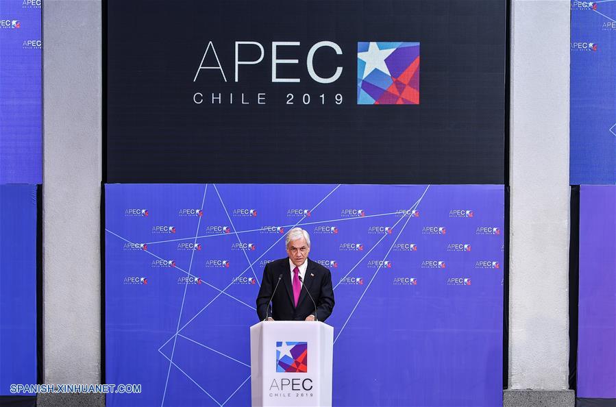 SANTIAGO, diciembre 12, 2018 (Xinhua) -- El presidente de Chile, Sebastián Pi?era, pronuncia un discurso durante la ceremonia de lanzamiento de la cumbre del Foro de Cooperación Económica Asia-Pacífico (APEC) Chile 2019, en el Palacio de La Moneda, en la cuidad de Santiago, capital de Chile, el 12 de diciembre de 2018. De acuerdo con información de la prensa local, Sebastián Pi?era encabezó el miércoles el lanzamiento del foro APEC Chile 2019, el cual abarcará más de 200 reuniones y tendrá como uno de los grandes ejes el hacerse cargo de la evolución tecnológica. (Xinhua/Jorge Villegas)