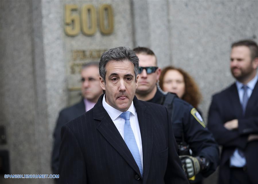 NUEVA YORK, diciembre 12, 2018 (Xinhua) -- Michael Cohen (c) sale de un edificio de la corte, en Nueva York, Estados Unidos, el 12 de diciembre de 2018. Michael Cohen, el ex abogado personal durante mucho tiempo del presidente estadounidense Donald Trump, fue sentenciado a tres a?os de prisión el miércoles tras declararse culpable de una serie de delitos, incluyendo violaciones al financiamiento de campa?a, evasión de impuestos y mentir al Congreso. (Xinhua/Wang Ying)