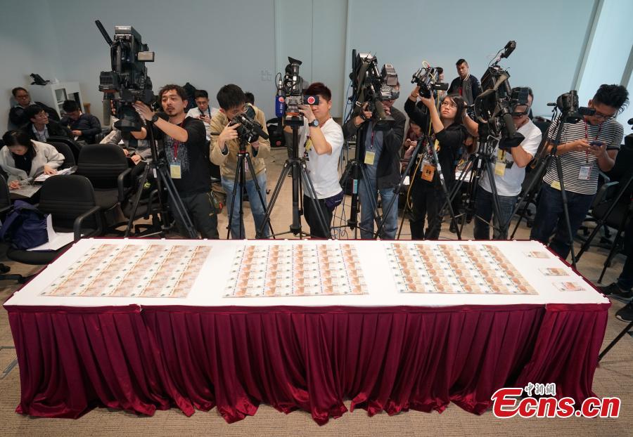 Los nuevos billetes de 1000 dólares HK se exhiben en Hong Kong. La autoridad monetaria de Hong Kong y los tres bancos emisores anunciaron que las nuevas series de billetes de 1000 y 500 dólares HK entrarán en circulación el 12 de diciembre y el 23 de enero, respectivamente. 11 de diciembre del 2018 (Foto: Zhang Wei/ Servicio de Noticias de China)