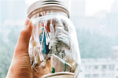 Entre la basura en las dos jarras, había cinta adhesiva de barriles de agua potable, pasta de dientes usada, cajas de medicamentos, etiquetas de anuncios pegadas en botellas de vidrio, embalajes de correo exprés, bolsas de mercancías y bolsas de comida. Dos personas llenaron en 3 meses dos jarras de 500 mililitros de basura, algo que parece increíble, pero Yu Yuan tiene su propio medio para reducir la basura.
