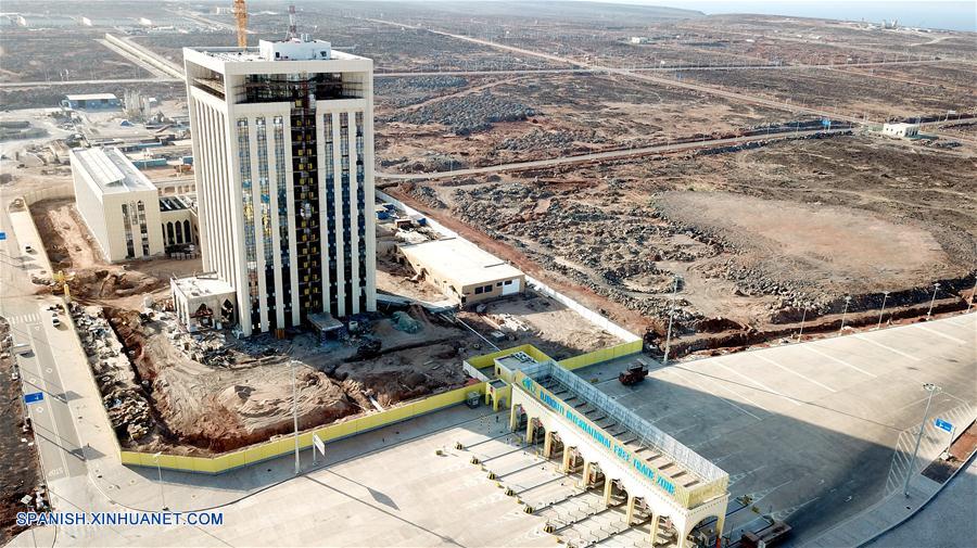 YIBUTI, diciembre 14, 2018 (Xinhua) -- Imagen del 9 de diciembre de 2018, de una vista aérea de la Zona de Libre Comercio Internacional de Yibuti, en la ciudad de Yibuti, capital de Yibuti. Yibuti no es sólo un centro de tráfico y comercio marítimo entre Europa, Asia y Africa, sino también una importante puerta de entrada a Africa por la construcción de la Ruta de la Seda Marítima del siglo XXI. En a?os recientes, un número de proyectos de cooperación China-Yibuti han hecho importantes contribuciones a la promoción de la cooperación económica y comercial entre China y Yibuti. (Xinhua/Wang Teng)