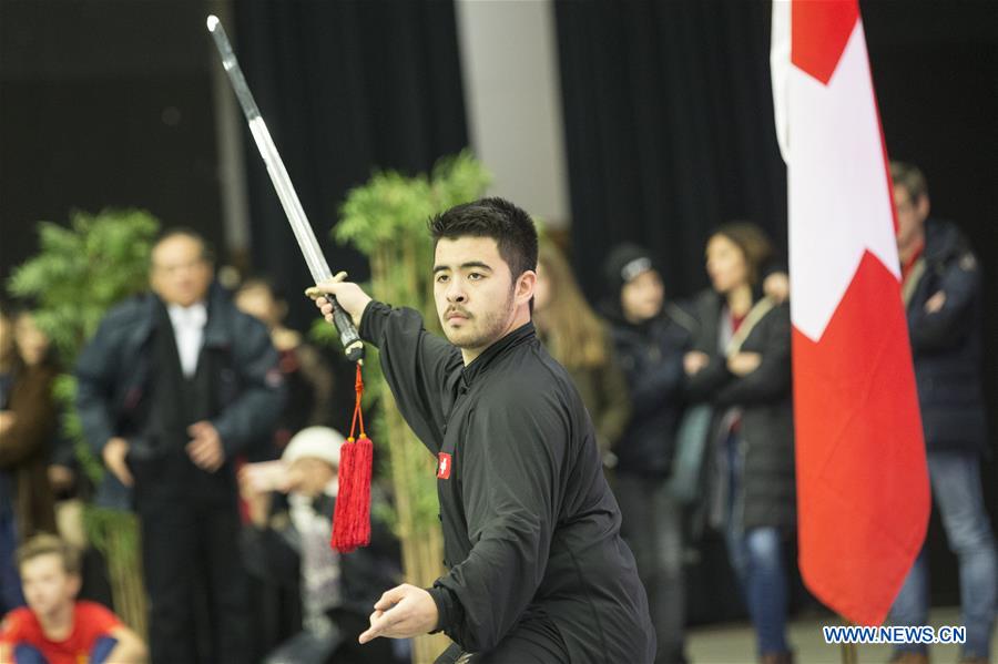 Un joven practica artes marciales chinas durante el Primer Festival de la Cultura Gastronómica China celebrado en Berna, capital de Suiza, el 16 de diciembre del 2018. Durante un día, los visitantes disfrutaron de diversos tentempiés chinos, así como de expresiones artísticas tradicionales como la caligrafía, las canciones folclóricas y las artes marciales. Este primer Festival de la Cultura Gastronómica China estuvo patrocinado por varias asociaciones locales y apoyado por la Embajada de China en Suiza. (Foto: Xinhua/ Xu Jinquan)