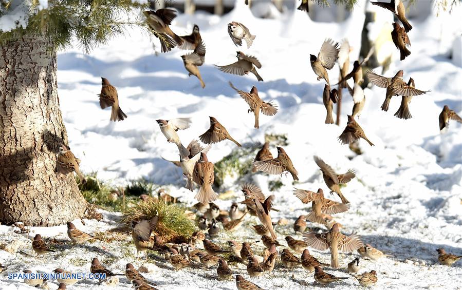 LHASA, diciembre 19, 2018 (Xinhua) -- Una bandada de pájaros vuela en la plaza del Palacio de Potala cubierta de nieve, en Lhasa, capital de la Región Autónoma del Tíbet, en el suroeste de China, el 19 de diciembre de 2018. Lhasa fue testigo el martes de la primera nevada de este invierno. (Xinhua/Chogo)