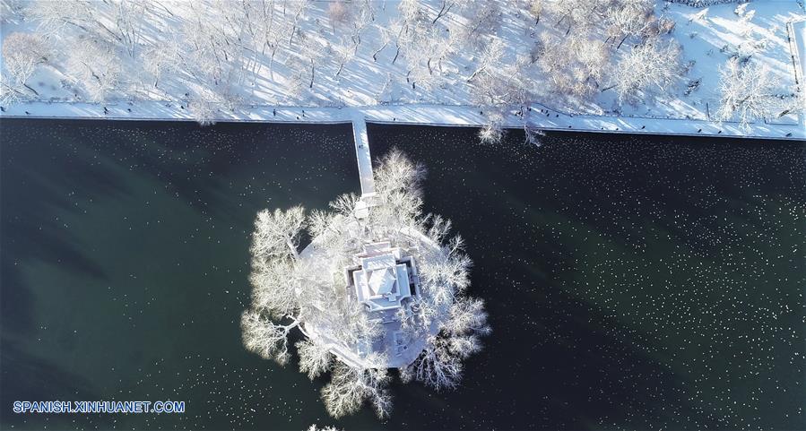 LHASA, diciembre 19, 2018 (Xinhua) -- Vista aérea de un parque cubierto de nieve, en Lhasa, capital de la Región Autónoma del Tíbet, en el suroeste de China, el 19 de diciembre de 2018. Lhasa fue testigo el martes de la primera nevada de este invierno. (Xinhua/Purbu Zhaxi)