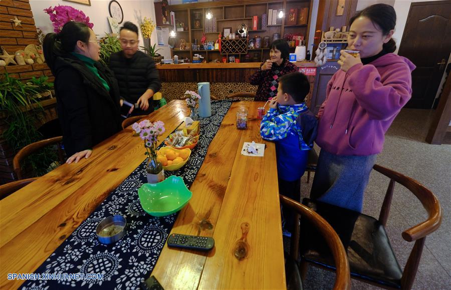 ZHEJIANG, diciembre 19, 2018 (Xinhua) -- Imagen del 15 de diciembre de 2018 de turistas comiendo en un hostal, en Zhujiajian de la ciudad de Zhoushan, provincia de Zhejiang, en el este de China. El turismo familiar está en auge cuando el gobierno local ha hecho constantes esfuerzos en la reinvención las zonas rurales. (Xinhua/Xu Yu)