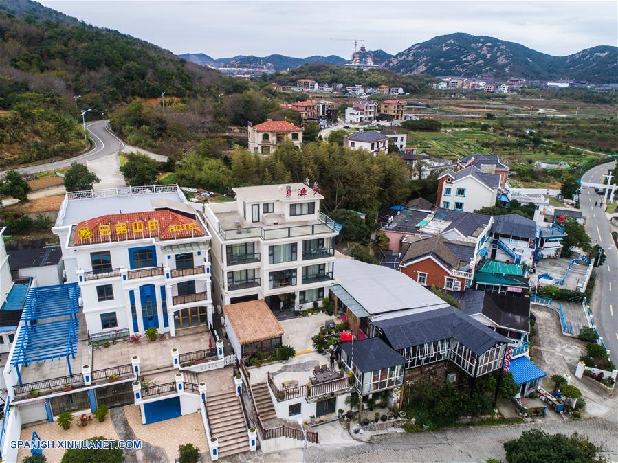 ZHEJIANG, diciembre 19, 2018 (Xinhua) -- Imagen del 15 de diciembre de 2018 de una vista de un hostal, en Zhujiajian de la ciudad de Zhoushan, provincia de Zhejiang, en el este de China. El turismo familiar está en auge cuando el gobierno local ha hecho constantes esfuerzos en la reinvención las zonas rurales. (Xinhua/Xu Yu)