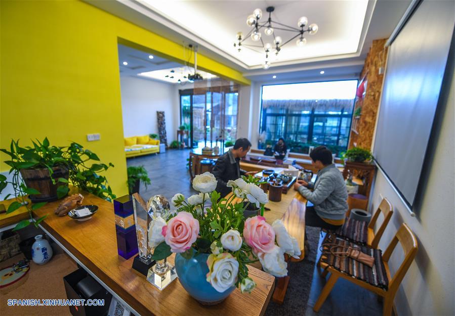 ZHEJIANG, diciembre 19, 2018 (Xinhua) -- Imagen del 6 de diciembre de 2018 de turistas bebiendo té en un hostal en la antigua localidad de Heqiao en Hangzhou, capital de la provincia de Zhejiang, en el este de China. El turismo familiar está en auge cuando el gobierno local ha hecho constantes esfuerzos en la reinvención las zonas rurales. (Xinhua/Xu Yu)