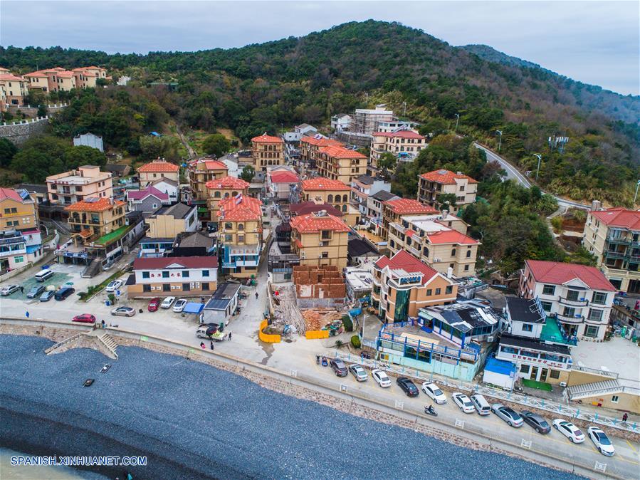 ZHEJIANG, diciembre 19, 2018 (Xinhua) -- Imagen del 15 de diciembre de 2018 de una vista aérea de los hostales, en Zhujiajian de la ciudad de Zhoushan, provincia de Zhejiang, en el este de China. El turismo familiar está en auge cuando el gobierno local ha hecho constantes esfuerzos en la reinvención las zonas rurales. (Xinhua/Xu Yu)