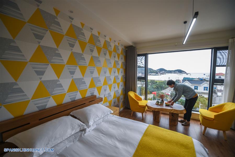 ZHEJIANG, diciembre 19, 2018 (Xinhua) -- Imagen del 15 de diciembre de 2018 de un empleado arreglando la habitación de los invitados en un hostal, en Zhujiajian de la ciudad de Zhoushan, provincia de Zhejiang, en el este de China. El turismo familiar está en auge cuando el gobierno local ha hecho constantes esfuerzos en la reinvención las zonas rurales. (Xinhua/Xu Yu)