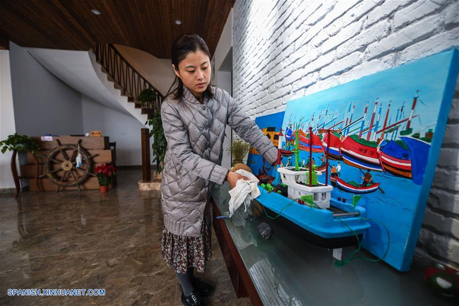 ZHEJIANG, diciembre 19, 2018 (Xinhua) -- Imagen del 16 de diciembre de 2018 de Zhang Xinyu, propietaria de un hostal trabajando en su hostal, en Zhujiajian de la ciudad de Zhoushan, provincia de Zhejiang, en el este de China. El turismo familiar está en auge cuando el gobierno local ha hecho constantes esfuerzos en la reinvención las zonas rurales. (Xinhua/Xu Yu)