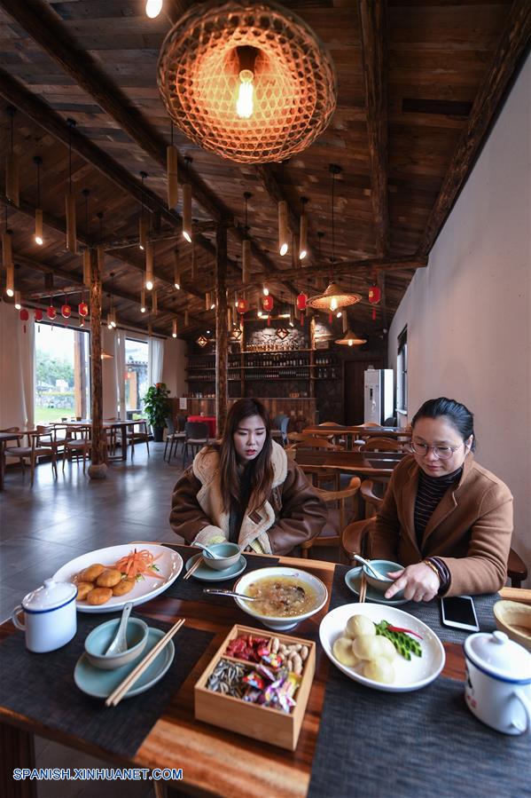 ZHEJIANG, diciembre 19, 2018 (Xinhua) -- La fundadora de un hostal Zhang Shuzhen (i) prueba los bocadillos hechos por ella misma en un hostal, en la antigua localidad de Heqiao en Hangzhou, capital de la provincia de Zhejiang, en el este de China, el 19 de diciembre de 2018. El turismo familiar está en auge cuando el gobierno local ha hecho constantes esfuerzos en la reinvención las zonas rurales. (Xinhua/Xu Yu)