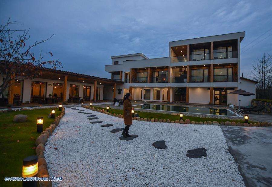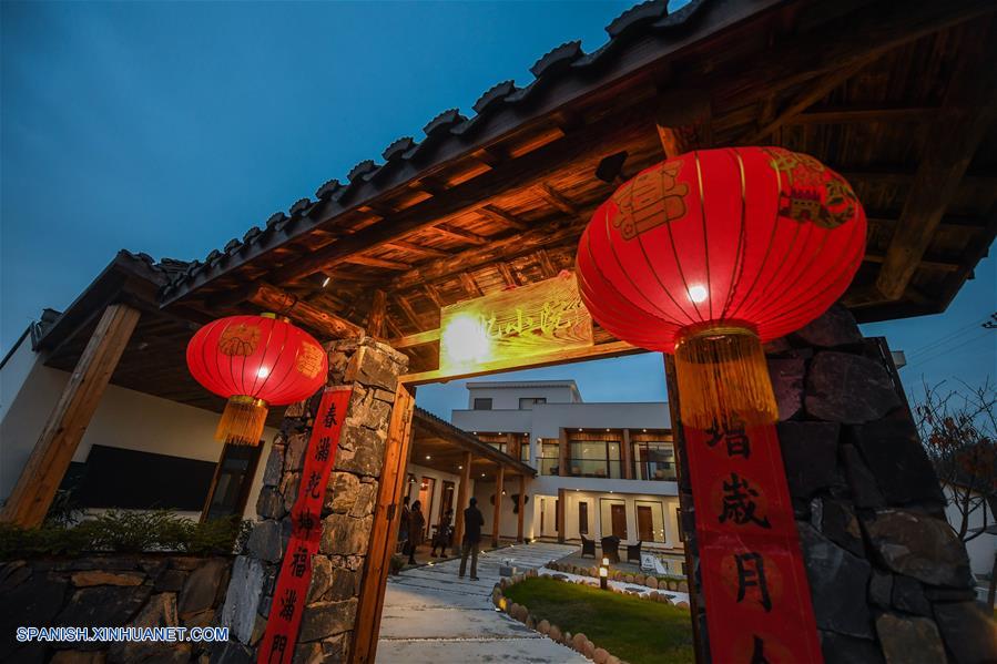 ZHEJIANG, diciembre 19, 2018 (Xinhua) -- Vista de un hostal en la antigua localidad de Heqiao en Hangzhou, capital de la provincia de Zhejiang, en el este de China, el 19 de diciembre de 2018. El turismo familiar está en auge cuando el gobierno local ha hecho constantes esfuerzos en la reinvención las zonas rurales. (Xinhua/Xu Yu)