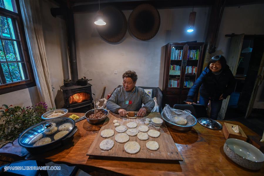 ZHEJIANG, diciembre 19, 2018 (Xinhua) -- La propietaria de un hostal Zhang Yan (d) y su madre elaboran especialidades culinarias locales, en la antigua localidad de Heqiao en Hangzhou, capital de la provincia de Zhejiang, en el este de China, el 19 de diciembre de 2018. El turismo familiar está en auge cuando el gobierno local ha hecho constantes esfuerzos en la reinvención las zonas rurales. (Xinhua/Xu Yu)