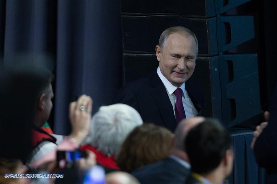 El presidente de Rusia, Vladimir Putin, llega a su conferencia de prensa anual, en Moscú, Rusia, el 20 de diciembre de 2018. (Xinhua/Bai Xueqi)
