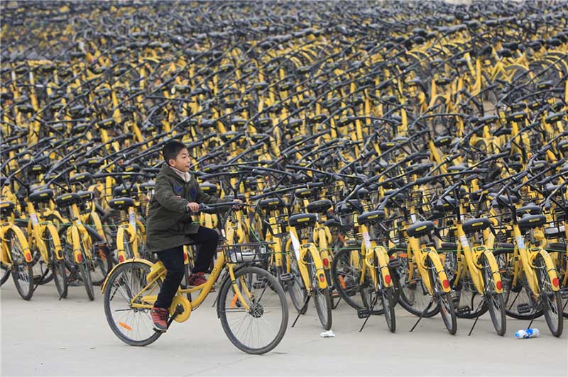 Bicicletas Ofo en Xiangyang, provincia de Hubei. [Foto: Guo Qi/ China Daily]