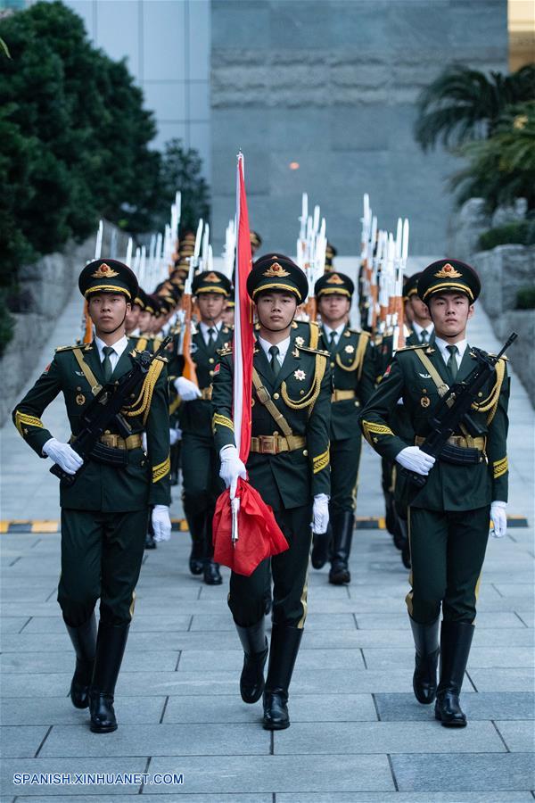MACAO, diciembre 20, 2018 (Xinhua) -- La guarnición de Macao del Ejército Popular de Liberación (EPL) sostiene una ceremonia de izamiento de bandera para celebrar el XIX aniversario del regreso de Macao a la patria, en Macao, en el sur de China, el 20 de diciembre de 2018. (Xinhua/Cheong Kam Ka)