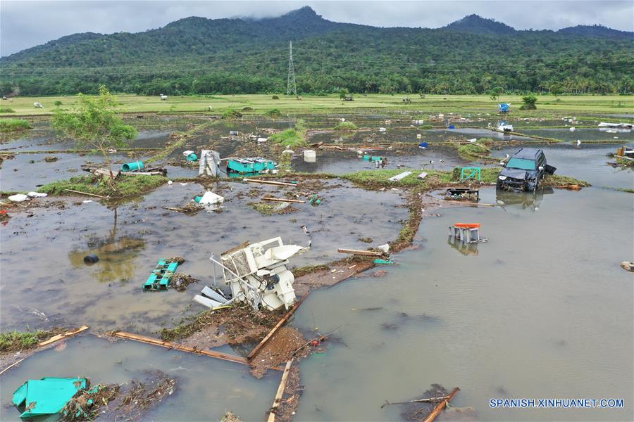 Vista de una granja da?ada por el tsunami, en la provincia Bantén, Indonesia, el 24 de diciembre de 2018. La agencia de manejo de desastres de Indonesia dijo el lunes que la cifra de muertes a causa del tsunami provocado por una erupción volcánica ascendió a 373, en tanto que la de heridos ha llegado a 1,459. (Xinhua/Du Yu)