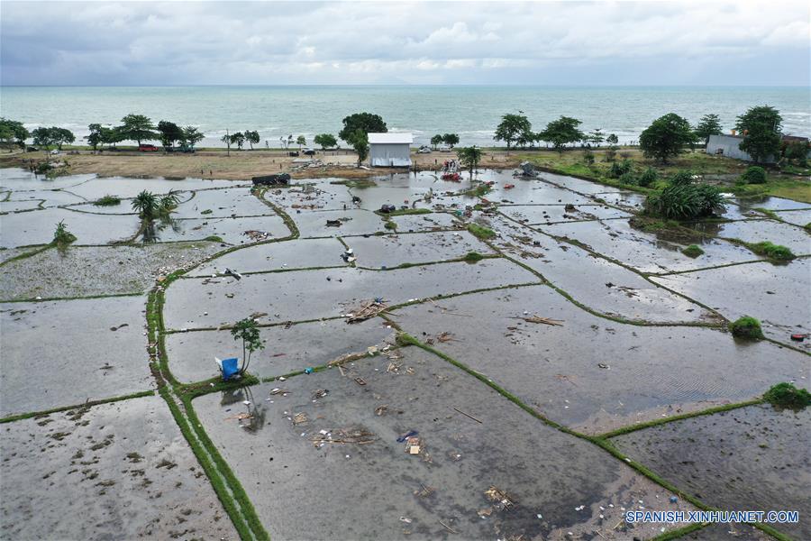 Vista de una granja da?ada por el tsunami, en la provincia Bantén, Indonesia, el 24 de diciembre de 2018. La agencia de manejo de desastres de Indonesia dijo el lunes que la cifra de muertes a causa del tsunami provocado por una erupción volcánica ascendió a 373, en tanto que la de heridos ha llegado a 1,459. (Xinhua/Du Yu)