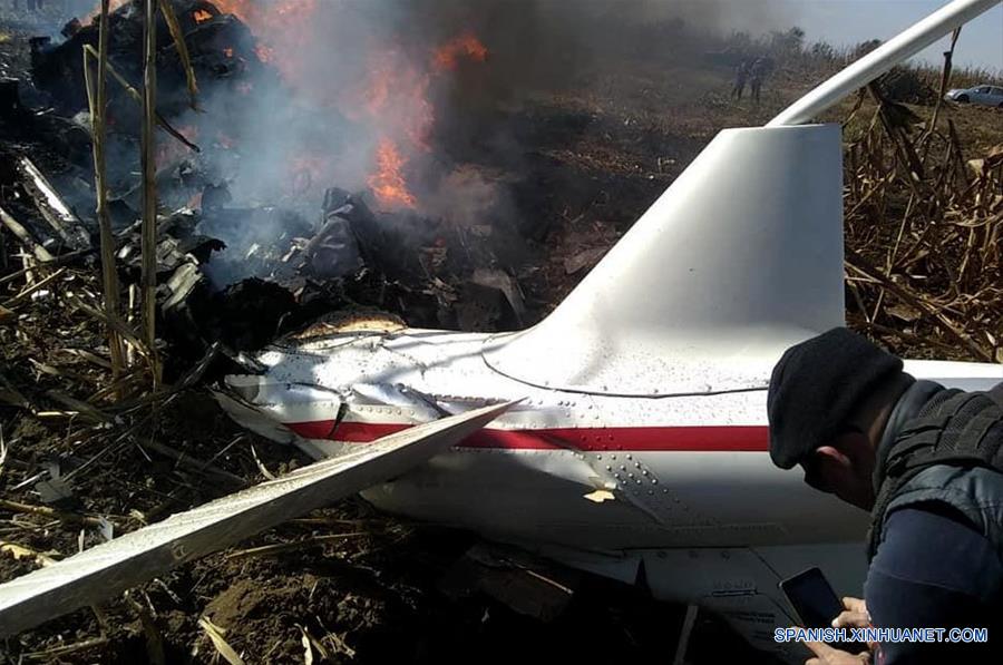 Imagen tomada con un dispositivo móvil de un elemento de la Policía Federal tomando fotografías de los restos de la avioneta donde viajaban la gobernadora del estado de Puebla, Martha Erika Alonso, y el senador y ex gobernador Rafael Moreno Valle, en el municipio de Coronango, estado de Puebla, México, el 24 de diciembre de 2018. El líder del Partido Acción Nacional (PAN) de México, Marko Cortés, confirmó el lunes la muerte de la gobernadora del estado de Puebla, Martha Erika Alonso, y del senador y ex gobernador Rafael Moreno Valle, durante un accidente aéreo. (Xinhua/Antonio Rivas)