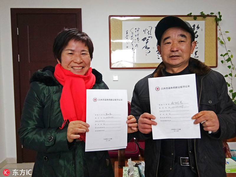 Residentes en Shangrao, provincia de Jiangxi, firman el acuerdo de donar sus órganos después de fallecer, 29 de enero del 2018. [Foto: IC]