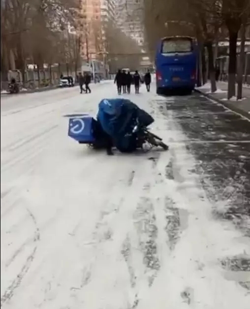 Las resbaladizas calles de Lanzhou en Gansu estaban cubiertas de nieve y hielo
