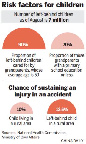 El informe afirma que el bajo nivel educativo hacía menos probable que los abuelos pudieran abordar adecuadamente las necesidades emocionales de los ni?os, permitiendo que los ni?os desarrollaran más problemas psicológicos. Además, se constató que muchos de los ni?os “dejados atrás” tienen que ocuparse de su propia atención diaria e incluso, ayudar al núcleo familiar en tareas domésticas y agrícolas.