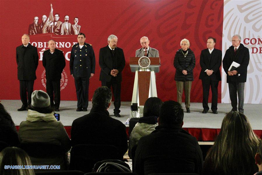 CIUDAD DE MEXICO, diciembre 26, 2018 (Xinhua) -- El subsecretario de la Secretaría de Comunicaciones y Transportes (SCT), Carlos Morán Moguel (4-d), participa durante la conferencia de prensa matutina del presidente mexicano Andrés Manuel López Obrador (4-i), en Palacio Nacional, en la Ciudad de México, capital de México, el 26 de diciembre de 2018. El presidente de México, Andrés Manuel López Obrador, prometió el miércoles "no ocultar absolutamente nada" sobre las causas del accidente aéreo en el que pereció el pasado lunes la gobernadora de Puebla, Martha Erika Alonso y su esposo, el senador Rafael Moreno Valle. (Xinhua/Str)