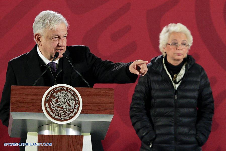 El presidente de México, Andrés Manuel López Obrador (i), acompa?ado por la secretaria mexicana de Gobernación, Olga Sánchez Cordero (d), participa durante una conferencia de prensa matutina, en Palacio Nacional, en la Ciudad de México, capital de México, el 26 de diciembre de 2018. El presidente de México, Andrés Manuel López Obrador, prometió el miércoles "no ocultar absolutamente nada" sobre las causas del accidente aéreo en el que pereció el pasado lunes la gobernadora de Puebla, Martha Erika Alonso y su esposo, el senador Rafael Moreno Valle. (Xinhua/Str)