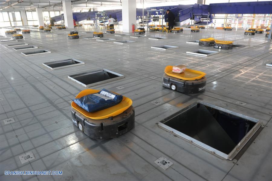 ANHUI, diciembre 28, 2018 (Xinhua) -- Imagen del 9 de noviembre de 2018, de robots clasificando paquetes en una compa?ía de entregas express, en la Zona de Desarrollo Económico Yingdong de Fuyang, en la provincia de Anhui, en el este de China. El sector de entregas express de China ha manejado 50 mil millones de paquetes en lo que va del a?o, informó el viernes la Oficina Postal Estatal. Impulsada por el comercio electrónico, la industria de entregas express vio un rápido crecimiento en los últimos 3 a?os, con el número de paquetes aumentando en 10 mil millones en promedio en cada uno de los últimos 3 a?os, dijo la oficina. China ha estado en el primer puesto en el mercado mundial en los últimos 3 a?os consecutivos, sobrepasando el monto de manejo combinado de economías desarrolladas como Estados Unidos, Japón y Europa. (Xinhua/Wang Biao)