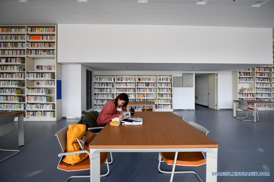 TIANJIN, diciembre 27, 2018 (Xinhua) -- Una mujer lee en la Librería de la Nueva Area de Binhai en Tianjin, en la Nueva Area de Binhai de la municipalidad de Tianjin, en el norte de China, el 27 de diciembre de 2018. La librería ha atraído a más de 2.8 millones de visitantes desde su apertura el 1 de octubre de 2017. (Xinhua/Li Ran)