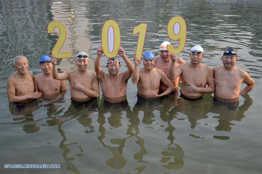 HEBEI, enero 1, 2019 (Xinhua) -- Hombres posan para una fotografía en Xingtai, en la provincia de Hebei, en el norte de China, el 1 de enero de 2019. Distintas actividades se llevaron a cabo en China para recibir el a?o 2019. (Xinhua/Chen Lei)