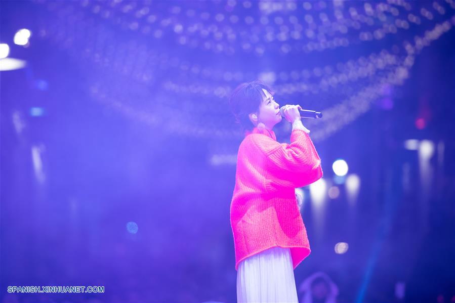 MACAO, enero 1, 2019 (Xinhua) -- Imagen del 31 de diciembre de 2018, de la cantante Vivian Chan interpretando una canción durante una fiesta nocturna para celebrar el A?o Nuevo en Macao, en el sur de China. (Xinhua/Cheong Kam Ka)