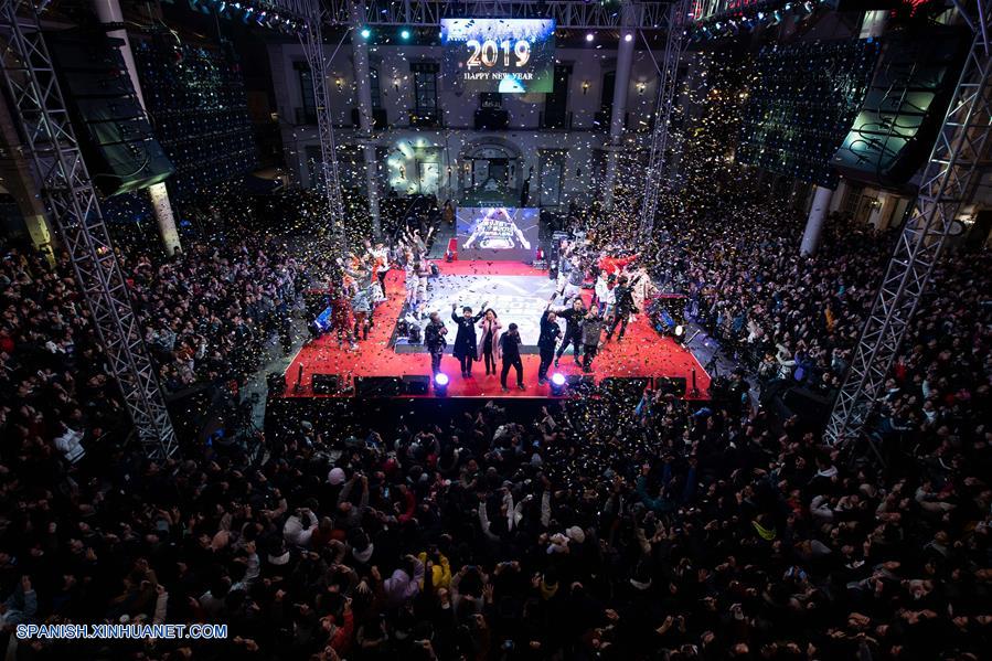 MACAO, enero 1, 2019 (Xinhua) -- Imagen del 31 de diciembre de 2018, de cantantes interpretando una canción durante una fiesta nocturna para celebrar el A?o Nuevo en Macao, en el sur de China. (Xinhua/Cheong Kam Ka)