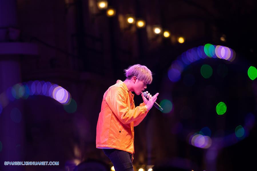 MACAO, enero 1, 2019 (Xinhua) -- Imagen del 31 de diciembre de 2018, del cantante Kane Ao Ieong interpretando una canción durante una fiesta nocturna para celebrar el A?o Nuevo en Macao, en el sur de China. (Xinhua/Cheong Kam Ka)