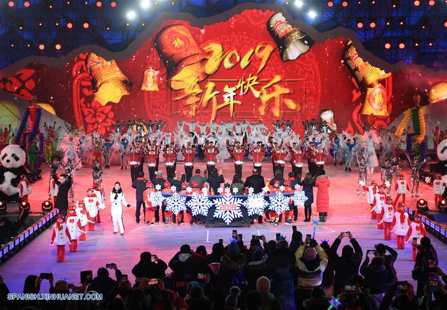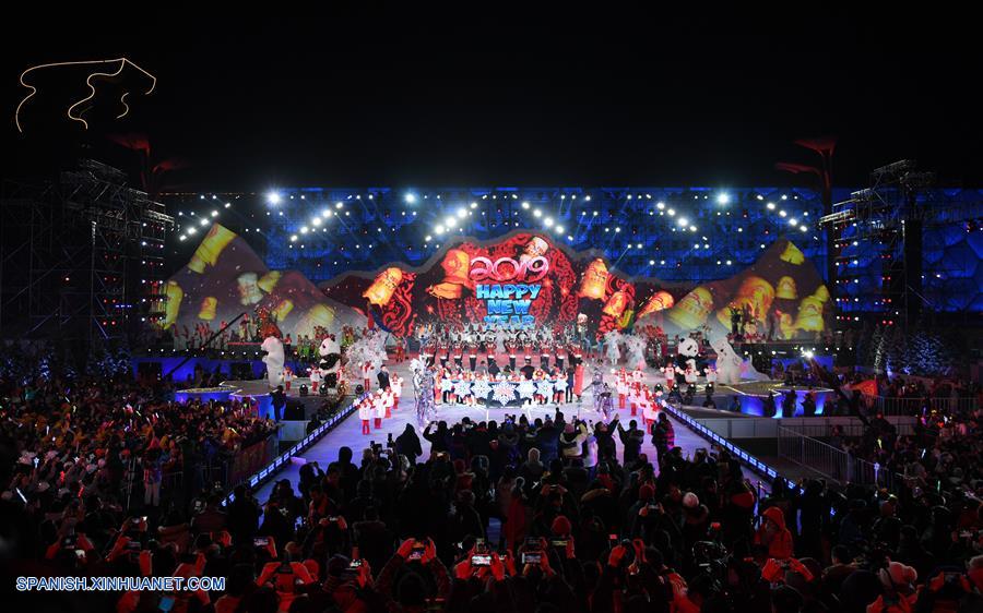BEIJING, enero 1, 2019 (Xinhua) -- Imagen del 31 de diciembre de 2018, de la ceremonia de apertura de la "Celebración de Cuenta Regresiva para el A?o Nuevo de Beijing 2019 y Festival de Turismo Cultural de Hielo y Nieve" en el Parque Olímpico Verde en Beijing, capital de China. Distintas actividades se llevaron a cabo en China para recibir el a?o 2019. (Xinhua/Zhang Chenlin)