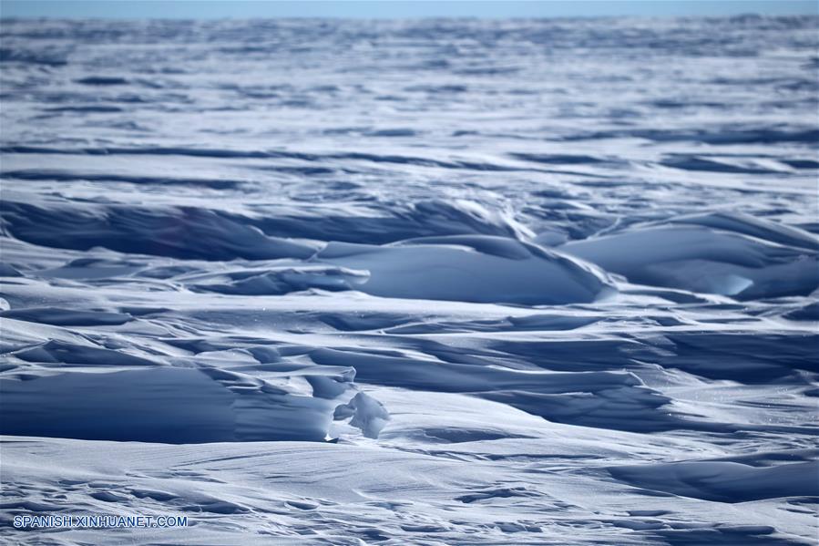 ANTARTIDA, enero 1, 2019 (Xinhua) -- Imagen del 31 de diciembre de 2018 de montículos de hielo en la Antártida. El equipo de expedición, que se espera llegue a la Estación Kunlun en cinco días, a aproximadamente 4,000 metros sobre el nivel de mar cerca del Domo A, entró en la Meseta de Antártida el lunes. (Xinhua/Liu Shiping)